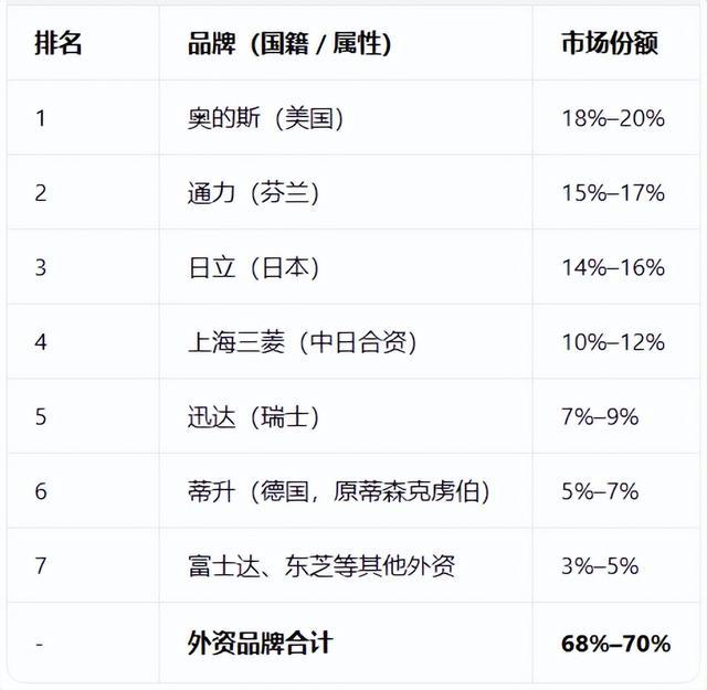2025年新增电梯市场外资品牌占有率